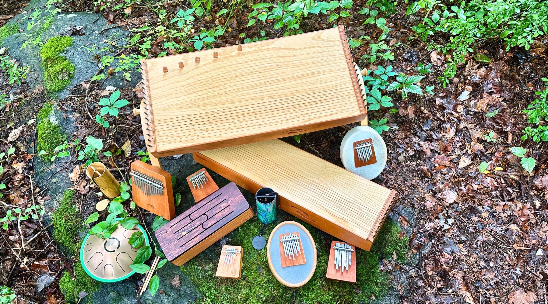 ELEMENTAL SOUNDSCAPES are collections of our instruments that are made to match each other with different musical chords in elemental themes. Instruments include Monochords and Tinka Tongs (Wooden Tongue Drums) by feeltone, Kalimbas and Sansulas by Hokema Kalimbas, Koshi and Zaphir chimes and Kigonki Binaural Tongue-Gong Drums. Click the images for more information, pricing and ordering. Photo credits to Joule L’Adara.